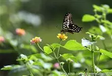青带凤蝶Graphium sarpedon ,又名青凤蝶,是最普遍的中型凤蝶,飞行速度很快。青带凤蝶的翅膀中央有许多浅蓝色的斑点,很整齐地排列成一条直线。这些斑点由上而下逐渐变大,就像一条青色的带子。全部>>