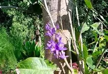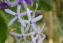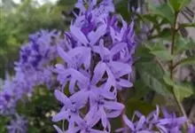蓝花藤是马鞭草科、蓝花藤属木质藤本,长达5米,叶对生,革质,触之粗糙,椭圆状长圆形或卵状椭圆形,总状花序顶生,下垂,花蓝紫色,花期4-5月。 蓝花藤原产古巴,…全部>>