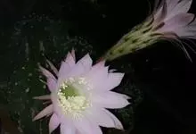 仙人球花 仙人掌科,仙人球属。植株单生或成丛。幼株球形,老株长成圆筒状,高可达75厘米,直径12-15厘米。球体暗绿色,具棱11-12。刺锥状,黑色,长1-1.5厘米。花着生于球体侧方,大型嗽喇叭状…全部>>