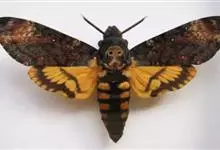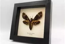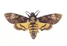 鬼脸天蛾,是鳞翅目天蛾科面形天蛾属动物。成虫翅展100~125毫米,体黑褐色;胸背有骷髅形斑纹;卵圆球形,直径约2毫米,淡黄绿色,表面光滑;老熟幼虫体长70~90毫米,蛹体长约56毫米;前翅为褐色,…全部>>