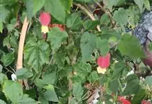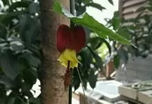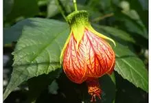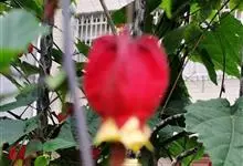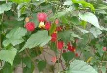 红萼苘麻是锦葵科、苘麻属常绿软木质灌木,叶绿色,长5-10厘米,心形,叶端尖,叶缘有钝锯齿,有时分裂,有细细的叶柄;叶互生,掌状叶脉;花单生于叶腋,具长梗,下垂;花萼红色,半套着大约4厘米长的花瓣,…全部>>