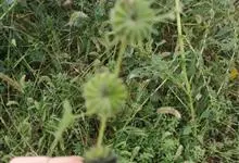 磨盘草 Sweet),又名:金花草、唐挡草。一年生成多年生、直立、分枝,亚灌木状草本,高0.5~2.5米,全部皆被灰色短柔毛。生于砂地、旷野或路旁。果为倒圆形似磨盘,直径约1.5厘米,黑色,…全部>>