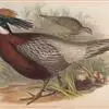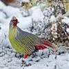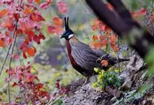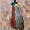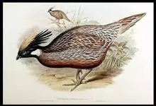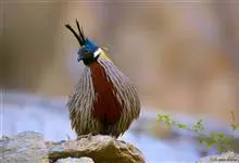 血雉雉科血雉属鸟类,别名血鸡、松花鸡,血雉的雄鸟大覆羽、尾下覆羽、尾上覆羽、脚、头侧、腊膜为红色,故称血雉。其别名甚多,各地皆异。在甘肃,因其胸侧和翅上覆羽沾绿,被称为“绿鸡”;因其羽毛形似柳叶,…全部>>