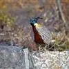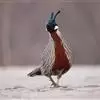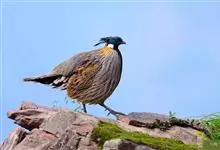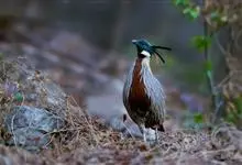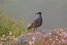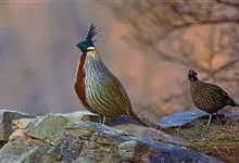 红腹角雉属于鸡形目雉科,雄鸟体羽及两翅主要为深栗红色,满布具黑缘的灰色眼状斑,下体灰斑大而色浅。雌鸟上体灰褐色,下体淡黄色,杂以黑、棕、白斑。全部>>