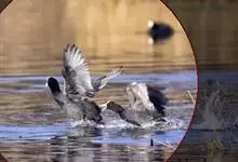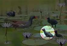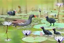 黑水鸡:是鹤形目、秧鸡科的鸟类,共有12个亚种。中型涉禽,体长24-35厘米。嘴长度适中,鼻孔狭长;头具额甲,后缘圆钝;嘴和额甲色彩鲜艳。翅圆形,第2枚初级飞羽最长,或第2枚和第3枚初级飞羽等长,…全部>>
