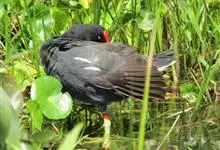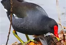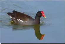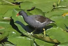 黑水鸡:是鹤形目、秧鸡科的鸟类,共有12个亚种。中型涉禽,体长24-35厘米。嘴长度适中,鼻孔狭长;头具额甲,后缘圆钝;嘴和额甲色彩鲜艳。翅圆形,第2枚初级飞羽最长,或第2枚和第3枚初级飞羽等长,…全部>>