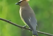 雪松太平鸟体形中等大小,体长约在19厘米左右。该物种雄雌同形同色,太平鸟成鸟额部及面部前端为栗色,向头后部颜色逐渐变浅;额基部、眼先、眼周及眼后部有黑色纹带,颌部亦有黑色区域;枕部黑色,与贯眼的黑色…全部>>
