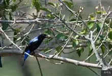 和平鸟中型鸟类,体长24~28厘米。眼红色,嘴、脚黑色。雄鸟从头顶到尾上覆羽等整个上体辉蓝色具紫色光泽,其余体羽黑色。雌鸟通体铜蓝色,仅飞羽黑褐色。常见的低地留鸟,…全部>>