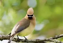 雪松太平鸟体形中等大小,体长约在19厘米左右。该物种雄雌同形同色,太平鸟成鸟额部及面部前端为栗色,向头后部颜色逐渐变浅;额基部、眼先、眼周及眼后部有黑色纹带,颌部亦有黑色区域;枕部黑色,与贯眼的黑色…全部>>