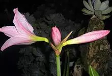 白肋朱顶红 Herb.)是石蒜科朱顶红属的多年生球根植物。 其鳞茎肥大,近球形,叶片带状,与花茎同出或花后抽出,翠绿色,叶片中央有一条纵向白色中柱;花茎从叶腋间抽出,佛焰苞状总苞片披针形,花被管圆筒状,…全部>>