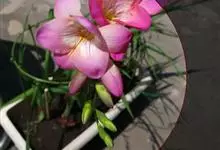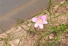 小韭兰学名韭菜莲又名风雨花、菖蒲莲、红玉帘和旱水仙,多年生草本,鳞茎卵球形,基生叶常数枚簇生,线形,扁平,花单生于花茎顶端,下有佛焰苞状总苞,花玫瑰红色或粉红色,蒴果近球形,种子黑色,花期夏秋。韭莲…全部>>