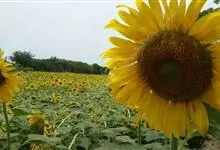 向日葵:是桔梗目、菊科、向日葵属的植物。因花序随太阳转动而得名。是一年生高大草本植物。茎粗壮,高1-3米,不分枝或有时上部分枝,被白色粗硬毛。叶互生,卵状心形或卵形,顶端急尖或渐尖,基生3出脉,…全部>>