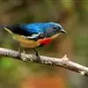 红胸啄花鸟:体重5-10克,体长60-92毫米。体形纤小。雄鸟上体呈辉亮的金属绿色;下体棕黄,胸部具一朱红色块斑,极易与其他啄花鸟区别。雌鸟上体呈橄榄绿,下体棕黄色。虹膜褐色,嘴褐黑色或角灰色,…全部>>