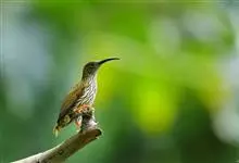 纹背捕蛛鸟:为太阳鸟科捕蛛鸟属的鸟类。是太阳鸟科中体型较大的一种,体重25-45克,体长160-210毫米。嘴粗长而尖且向下弯曲。上体橄榄黄色具黑色中央斑纹。下体淡黄白色满布黑色纵纹,尾具黑色次端斑。…全部>>