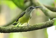 纹背捕蛛鸟:为太阳鸟科捕蛛鸟属的鸟类。是太阳鸟科中体型较大的一种,体重25-45克,体长160-210毫米。嘴粗长而尖且向下弯曲。上体橄榄黄色具黑色中央斑纹。下体淡黄白色满布黑色纵纹,尾具黑色次端斑。…全部>>