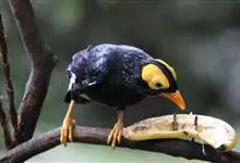 金冠树八哥为椋鸟科树八哥属的鸟类。体长约23厘米,闪辉黑色。特征为具翼斑及颏黄色,脸颊裸露皮肤粉黄色。分布于印度、缅甸、泰国以及中国大陆的云南、广东等地。…全部>>