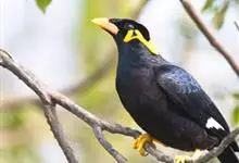 金冠树八哥为椋鸟科树八哥属的鸟类。体长约23厘米,闪辉黑色。特征为具翼斑及颏黄色,脸颊裸露皮肤粉黄色。分布于印度、缅甸、泰国以及中国大陆的云南、广东等地。…全部>>