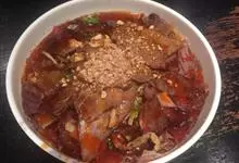 夫妻肺片是四川省成都市的一道传统名菜,属于川菜系。该菜品由郭朝华、张田政夫妻创制而成,通常以牛头皮、牛心、牛舌、牛肚、牛肉为主料,进行卤制,而后切片。再配以辣椒油、花椒面等辅料制成红油浇在上面。…全部>>