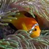 小丑鱼是鲈形目雀鲷科小丑鱼属鱼类的统称。体长仅5—6厘米。身体色彩艳丽,多为红色、橘红色;除透明的胸鳍与软背鳍鳍条外部,其余鳍均为黑色。体形怪异,体色多变,通常体侧有白色条纹。…全部>>