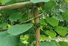 千金藤 Miers),防己科千金藤属多年生草质或近木质缠绕藤本植物。根圆柱状;皮暗褐色;小枝细弱而韧,老茎木质化圆柱形;叶阔卵形草质或纸质;花序伞状腋生,花小黄绿色;核果球形红色;花期5-6月,…全部>>