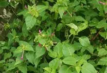 即紫茉莉,英文名:Four-o'clock,Marvel of Peru,为紫茉莉科、紫茉莉属多年生草本植物,一年生栽培。株高50~80cm。根粗壮,茎多分枝而散生。叶对生,卵形或心脏形。花数朵簇生…全部>>