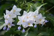 白英是茄科茄属草质藤本植物。茎呈圆柱形,外表黄绿色或棕绿色,茎及小枝均密被具节长柔毛;叶互生,多数为琴形,先端渐尖,两面均被白色发亮的长柔毛;花冠蓝紫色或白色;浆果球状,成熟时红黑色,…全部>>