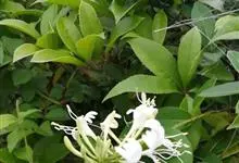 山银花在华南地区野外山林生长。木质藤本,长2~5m。树皮黄褐色渐次变为白色,嫩时有短柔毛。叶对生,卵圆形至椭圆形,长4~8cm,宽3.5~5cm,上面绿色,主脉上有短疏毛,下面带灰白色,密生白色短柔…全部>>