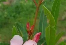 白花夹竹桃是夹竹桃科、夹竹桃属植物夹竹桃的栽培品种。常绿直立大灌木,枝条灰绿色;嫩枝条具稜,被微毛,老时毛脱落。叶3-4枚轮生,下枝为对生,叶面深绿,叶背浅绿色;侧脉纤细平行与中脉成直角;叶柄扁平,…全部>>