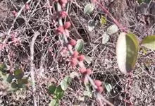 火棘 H. L. Li)是蔷薇科火棘属常绿灌木,老枝呈暗褐色;叶片呈倒卵形,边缘有钝锯齿,齿尖向内弯,两面皆无毛;叶柄短,无毛或嫩时有柔毛;花序是复伞房状,花瓣呈白色近圆形;果球近圆形,…全部>>