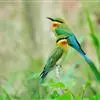 蓝颊蜂虎:是蜂虎科、蜂虎属的鸟类,共有2个亚种。体长27-33厘米,翼展46-49厘米,体重38-50克。嘴形细长而下弯,先端尖,…全部>>