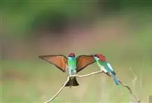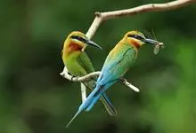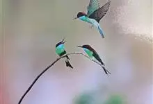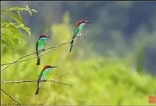 蓝颊蜂虎:是蜂虎科、蜂虎属的鸟类,共有2个亚种。体长27-33厘米,翼展46-49厘米,体重38-50克。嘴形细长而下弯,先端尖,…全部>>