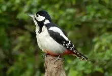 大斑啄木鸟隶属鸟纲鴷形目啄木鸟科。雄鸟头顶黑色,枕部红色,眼先、颊部和耳羽白色,颈部污白色,下嘴基部至后颈有1道黑色条纹并与从颈侧延伸到胸侧的黑色条带相连,背和两翼黑色,肩部具1个大的白色斑块,…全部>>