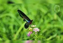 碧翠凤蝶,Papilio bianor Cramer,凤蝶科凤蝶属的一个物种。形态 成虫:翅展90—135 mm。体、翅黑色,满布翠绿色鳞片,在脉纹间更集中,已表现出翠绿带。…全部>>