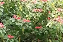 猩猩草:常绿或半常绿灌木,盆栽时株高0.5米-2米,在亚热带地区可长到6米以上。茎直立而光滑,单叶互生,卵状椭圆形至阔披针形,具不规则的深缺刻。长10-15厘米。花小,有蜜腺,排列成密集的伞房花序。…全部>>