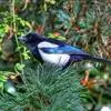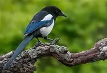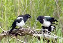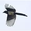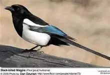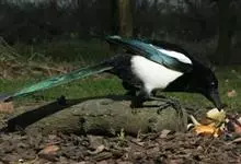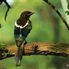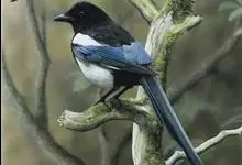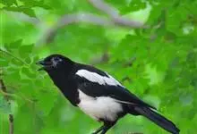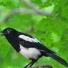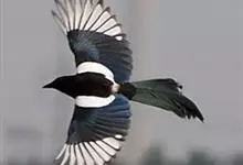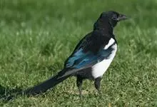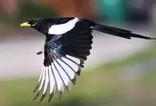 喜鹊:是鸦科、鹊属的一种鸟类。共有11个亚种。体长40-50厘米,雌雄羽色相似,头、颈、背至尾均为黑色,并自前往后分别呈现紫色、绿蓝色、绿色等光泽,双翅黑色而在翼肩有一大形白斑,尾远较翅长,呈楔形,…全部>>