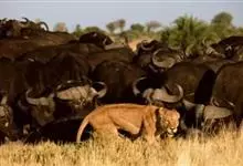 非洲野水牛:共有5个亚种。头体长2.1-3.4米,身高1-1.7米,体重300-900千克。胸膛宽阔,四肢粗壮,头大角长,雄性的角从头部向外和向下扩散,在一些雄性中,角通过覆盖头部的大盾连接。头顶的…全部>>