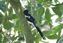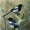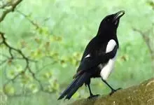 喜鹊:是鸦科、鹊属的一种鸟类。共有11个亚种。体长40-50厘米,雌雄羽色相似,头、颈、背至尾均为黑色,并自前往后分别呈现紫色、绿蓝色、绿色等光泽,双翅黑色而在翼肩有一大形白斑,尾远较翅长,呈楔形,…全部>>