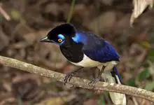 绒冠蓝鸦:雌雄相似,体长35厘米,体重127-170克。具中等长度的鸟喙。平均体重约为157克,外形漂亮,脸部黑色,眼圈金色,眼圈四周有蓝色斑块,头上羽冠黑色如同黑色毡帽戴在头顶,非常醒目,喉部蓝色,…全部>>