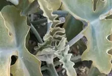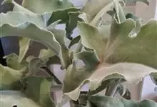 仙女之舞是景天科、伽蓝菜属植物。常绿肉质灌木,株高可达2-3米。幼株茎上有毛。叶有柄;单叶对生,阔卵状三角形,肉质;新叶开展,老叶正面凹、背面圆凸,缘具稀锯齿,橄榄绿色至灰绿色,被稠密的灰白色毛。…全部>>