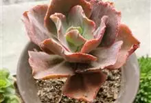 女王花笠,又名扇贝石莲花、女王花舞笠,是景天科拟石莲花属的多肉植物。由美国加利福尼亚州的育种师Dick Wright于1964年培育。特征是呈大波浪状褶皱的红色叶缘和气质高贵的粉紫色调。…全部>>