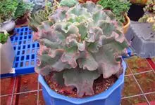 女王花笠,又名扇贝石莲花、女王花舞笠,是景天科拟石莲花属的多肉植物。由美国加利福尼亚州的育种师Dick Wright于1964年培育。特征是呈大波浪状褶皱的红色叶缘和气质高贵的粉紫色调。…全部>>