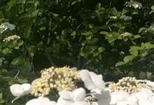 蝴蝶戏珠花 Miq.)是荚蒾科荚蒾属植物。落叶灌木,高达3米;当年小枝浅黄褐色。叶较狭,宽卵形或矩圆状卵形,有时椭圆状倒卵形。花序直径4-10厘米,外围有4-6朵白色、木型的不孕花。果实先红色后变黑色,…全部>>