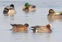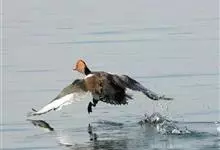 赤嘴潜鸭俗称大红头,是大型鸭类,个体比绿头鸭小,体长45-55厘米,体重1千克左右。雄鸟头浓栗色,具淡棕黄色羽冠。上体暗褐色,翼镜白色,嘴赤红色。下体黑色,两胁白色,特征极明显,野外容易辨别。…全部>>