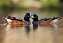 琵嘴鸭:属中型鸭类,个体比绿头鸭稍小,体长43-51厘米,体重0.5千克左右。雄鸭头至上颈暗绿色而具光泽,背黑色,背的两边以及外侧肩羽和胸白色,且连成一体,翼镜金属绿色,腹和两胁栗色,脚橙红色,嘴黑色,…全部>>