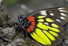 报喜斑粉蝶是粉蝶科斑粉蝶属的一种动物,又名红肩粉蝶、藤粉蝶等。幼虫群集性很强,从同一卵块孵化出的幼虫,幼龄期全部群集在一起取食,高龄幼虫常分散成小群。幼虫群集危害叶片,造成秃枝,严重者可将树吃成光杆,…全部>>