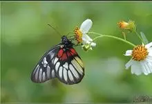 报喜斑粉蝶是粉蝶科斑粉蝶属的一种动物,又名红肩粉蝶、藤粉蝶等。幼虫群集性很强,从同一卵块孵化出的幼虫,幼龄期全部群集在一起取食,高龄幼虫常分散成小群。幼虫群集危害叶片,造成秃枝,严重者可将树吃成光杆,…全部>>