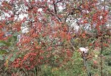 火棘 H. L. Li)是蔷薇科火棘属常绿灌木,老枝呈暗褐色;叶片呈倒卵形,边缘有钝锯齿,齿尖向内弯,两面皆无毛;叶柄短,无毛或嫩时有柔毛;花序是复伞房状,花瓣呈白色近圆形;果球近圆形,…全部>>