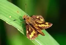 姜弄蝶 Udaspes folus ,又叫银斑姜蝶。幼虫吐丝粘叶成苞,隐藏其中取食,受害叶呈缺刻或在1/3处断落,…全部>>