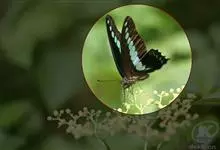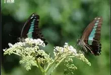 青带凤蝶Graphium sarpedon ,又名青凤蝶,是最普遍的中型凤蝶,飞行速度很快。青带凤蝶的翅膀中央有许多浅蓝色的斑点,很整齐地排列成一条直线。这些斑点由上而下逐渐变大,就像一条青色的带子。全部>>