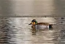 绿翅鸭是小型鸭类,体长37厘米,体重约0.5千克。嘴脚均为黑色。雄鸟头至颈部深栗色,头顶两侧从眼开始有一条宽阔的绿色带斑一直延伸至颈侧,尾下覆羽黑色,两侧各有一黄色三角形斑,在水中游泳时,极为醒目。…全部>>
